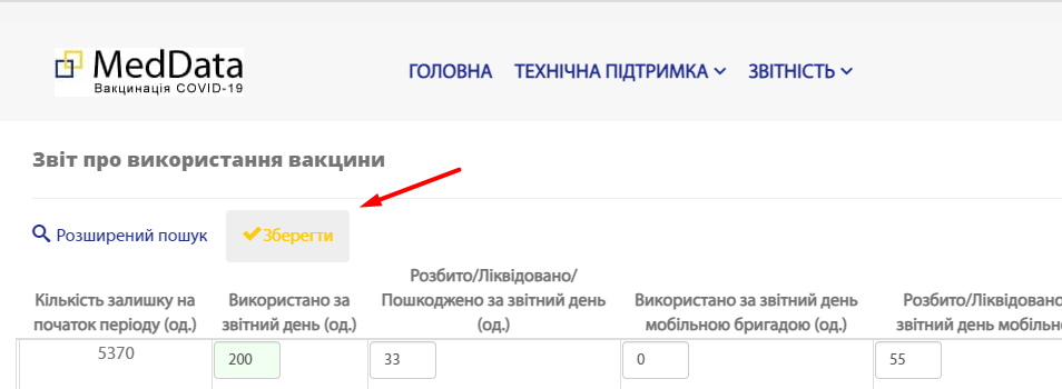 Всі показники щодо обліку та використання вакцин вносяться в систему MedData з 12 до 17:00 години за попередній день щоденно.